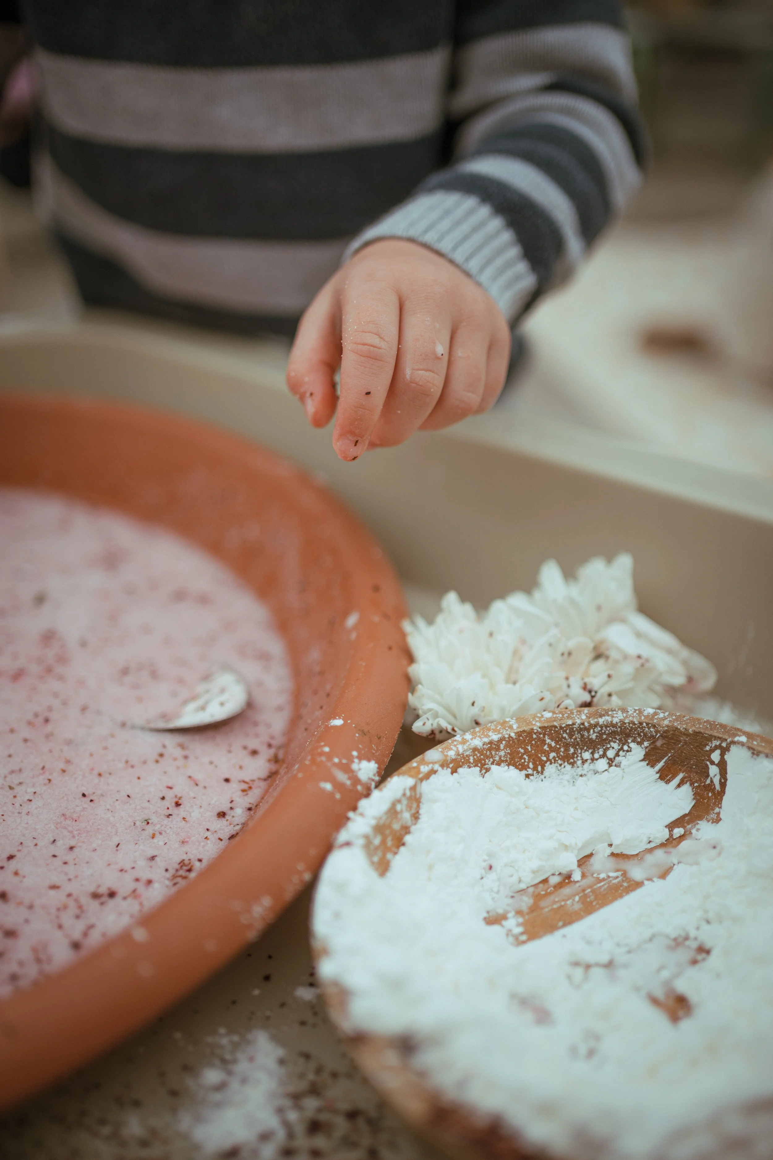 Calm Play offers a teacher-designed program shaped by early learning principles and grounded in child-led exploration. Each week follows a clear theme that informs our setups, materials, and structure. This helps create a space that feels calm and engaging for children while still allowing them to explore in ways that feel fun.